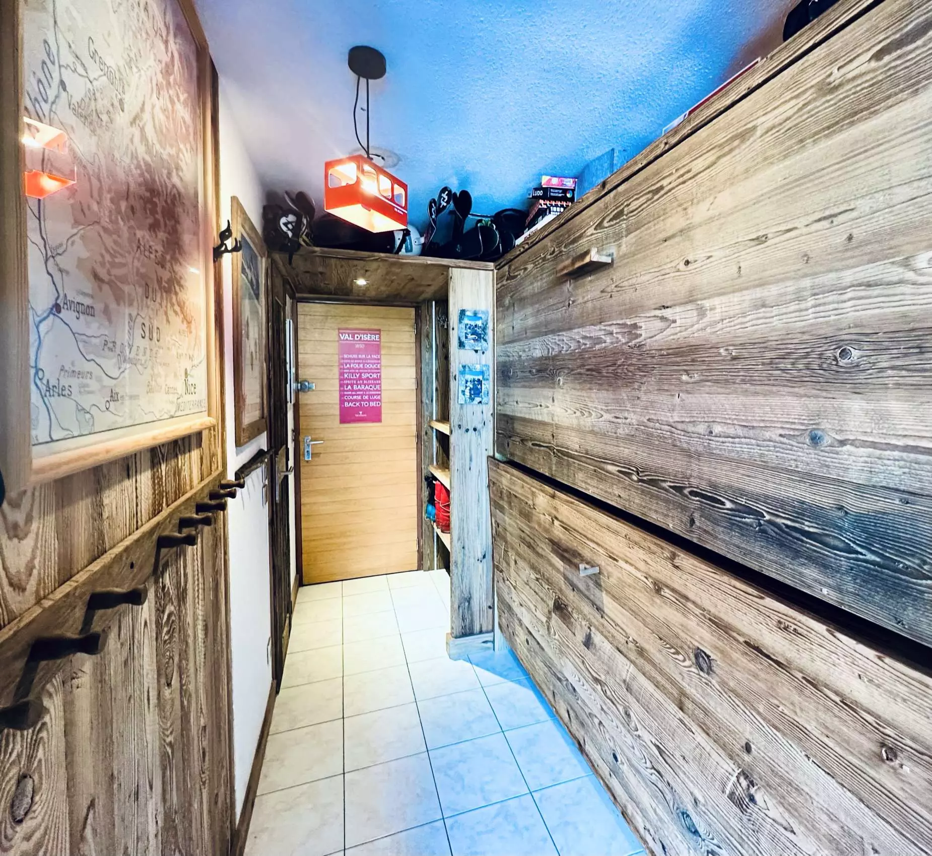 Im Eingangsbereich befinden sich zwei ausklappbare Etagenbetten.